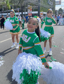 El hermoso ramillete de las palillonas y la banda estarían unos pasos más atrás y luego las pomponeras. Los últimos fueron los Caballeros Cadetes, el Cuadro Típico de Centroamérica y el Pelotón Especial.