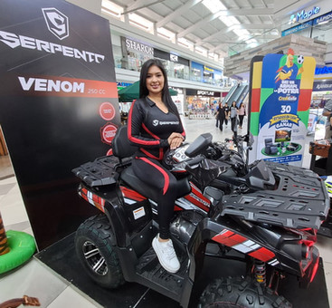 .CUATRIMOTO SERPENTO VENOM 2026: Cilindraje 250cc. Transmisión manual 4 velocidades (mecánica), Luces LED; Tablero digital; Respaldar pasajero; Motor 4 tiempos; Frenado de disco; y retroceso; Cargador de celular