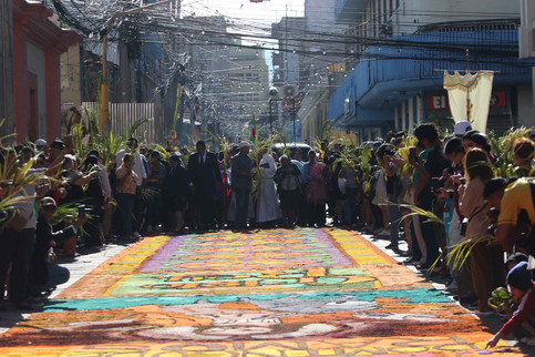 Tegucigalpa. Bajo un sol radiante y un ambiente de profunda devoción, centenares de capitalinos se congregaron este domingo en el Centro Histórico para dar inicio a la Semana Santa con la tradicional procesión del Domingo de Ramos y la exhibición de las monumentales alfombras de aserrín.